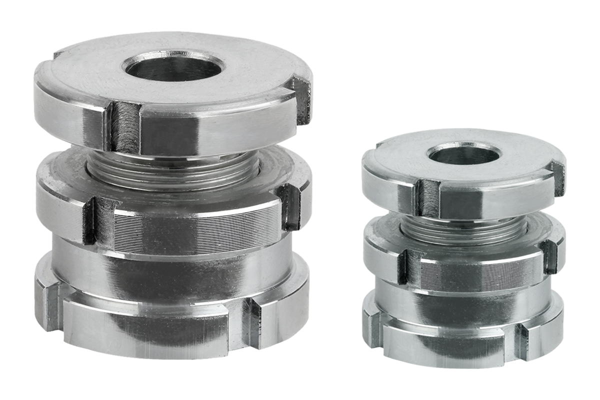 These low version levelling sets with locknut are used to mount and align motors, aggregates, drive units and production lines. The advantage is the low height. Alignments can be made quickly and easily even with several levelling points. Distortion-free mounting is guaranteed. The locknut secures a prescribed adjustment.