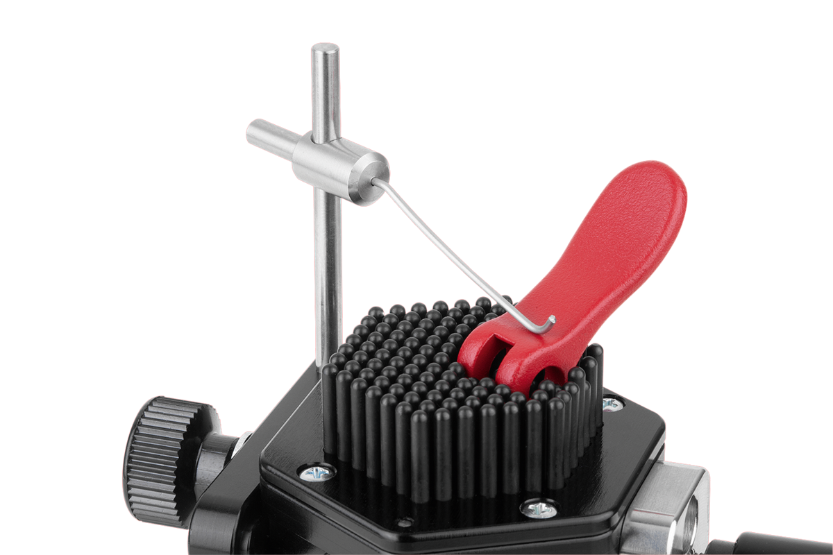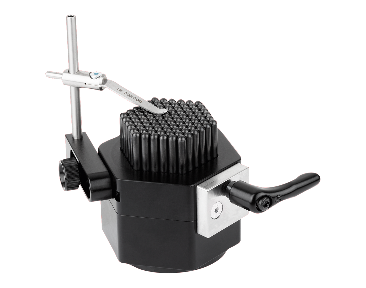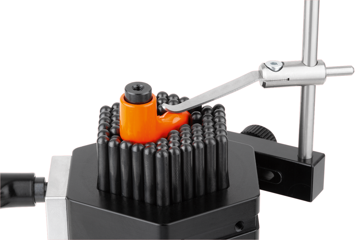 Idéal pour le serrage de pièces moulées. Les aiguilles à ressort s'adaptent à la forme de la pièce lors de sa mise en place. Les aiguilles sont bloquées par serrage. Le positionnement et la fixation des pièces dans le logement prévu à cet effet sont ainsi reproductibles.