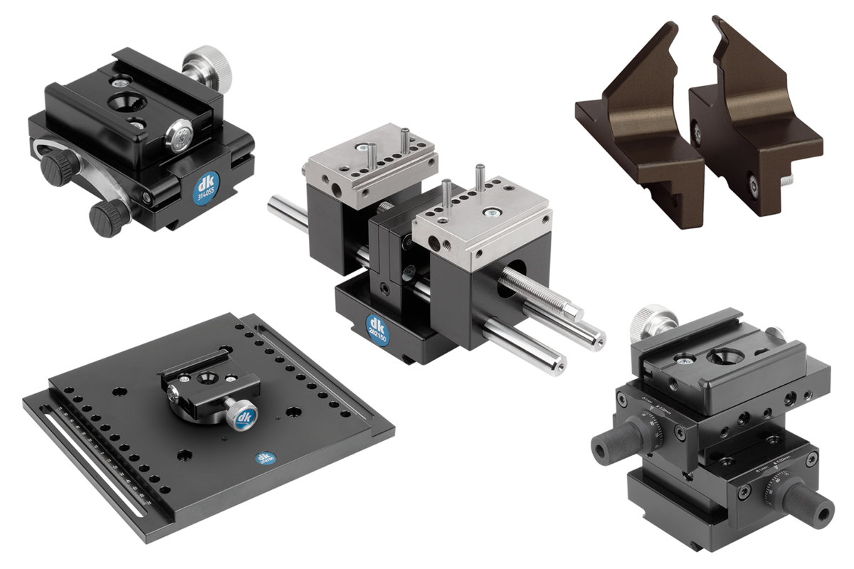 Ce kit permet un réglage grossier et fin, et donc un positionnement exact. Dans ce cas, l’étau autocentrant de précision peut être fixé directement sur la plaque de base ou être associé à la table croisée ou à la griffe à serrage rapide avec élément d’angle.