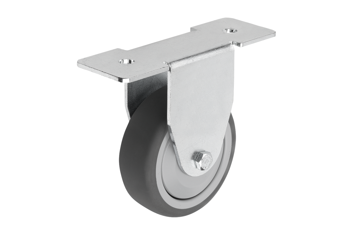 Leur bande de roulement en polyuréthane thermoplastique (TPU) de haute qualité possède une dureté de 94° Shore A et est moulée par injection sur le corps de roue. Cette bande de roulement ne laisse pas de traces, n’entraîne pas de décoloration par contact et se caractérise par une faible résistance au roulement et au braquage ainsi que par une grande résistance à l’usure.