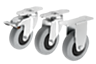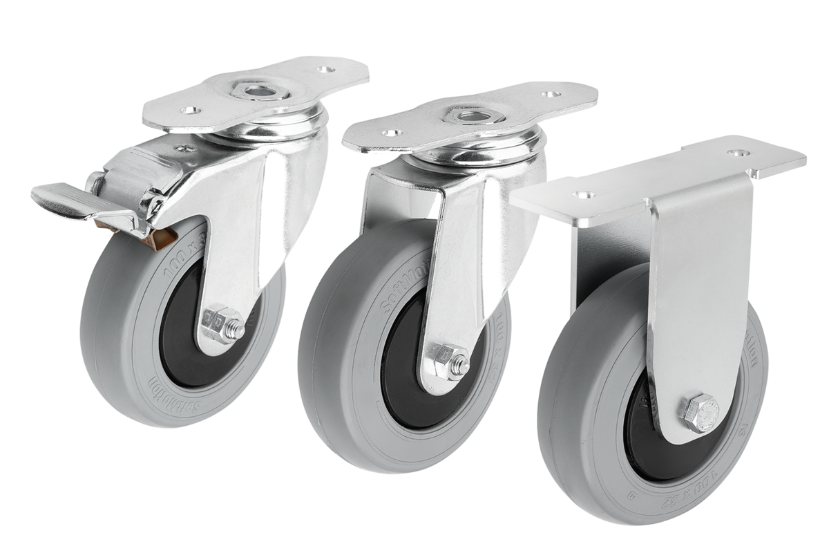 Deux plaques de fixation spécialement conçues garantissent une adaptabilité quasi universelle à chaque profilé aluminium. Notre gamme standard comprend différentes roulettes telles que des roulettes fixes et des roulettes pivotantes, avec ou sans frein.