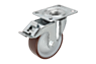 Tôle d’acier : emboutie galvanisée. Chape pivotante sur double chemin de billes, étanche. Roues équipées de paliers lisses.