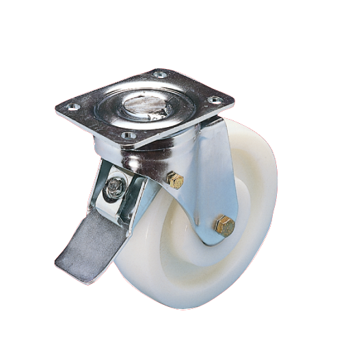 Roulettes pivotantes en tôle d’acier avec roue en polyamide, modèle lourd, roulement lisse ou à billes