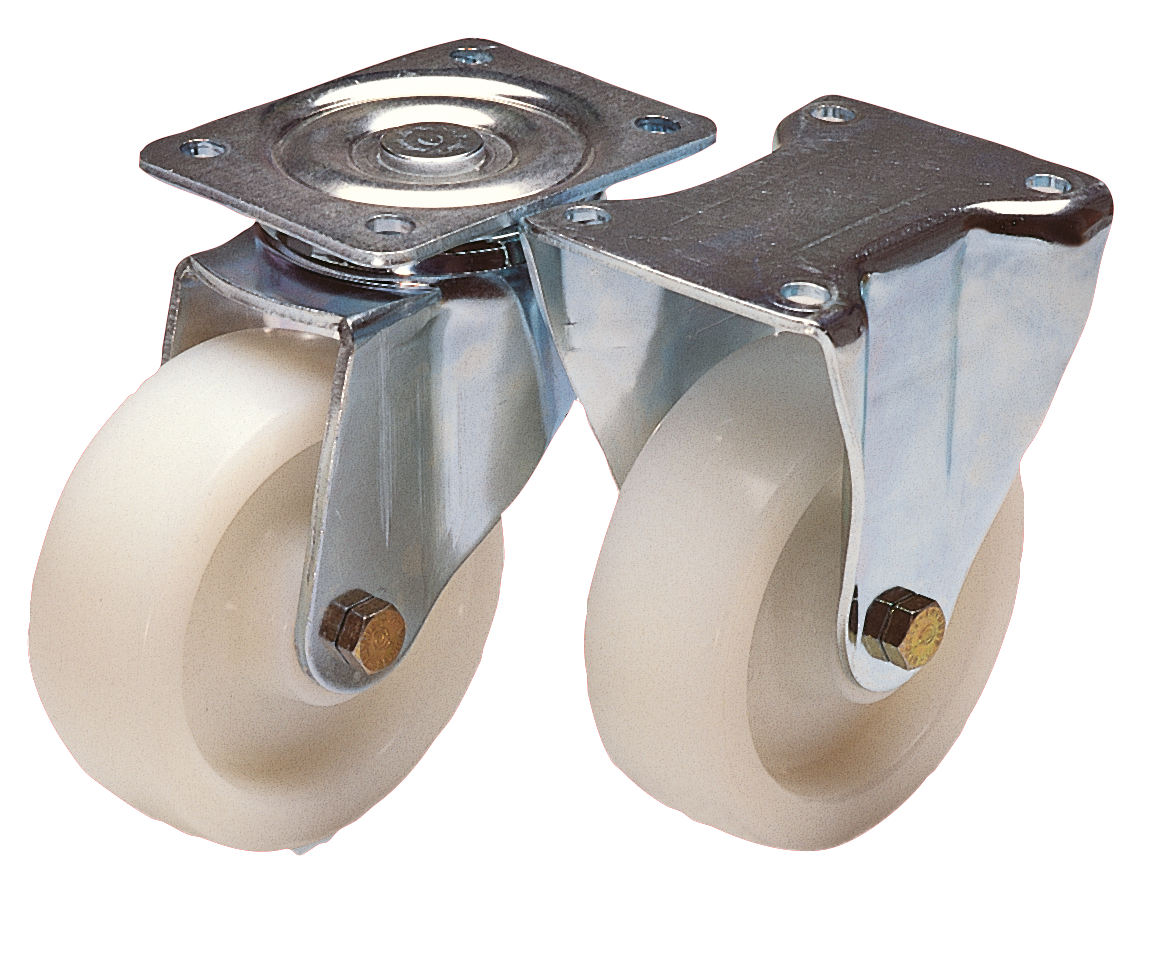Roulettes fixes en tôle d’acier avec roue en polyamide, modèle lourd, roulement lisse ou à billes