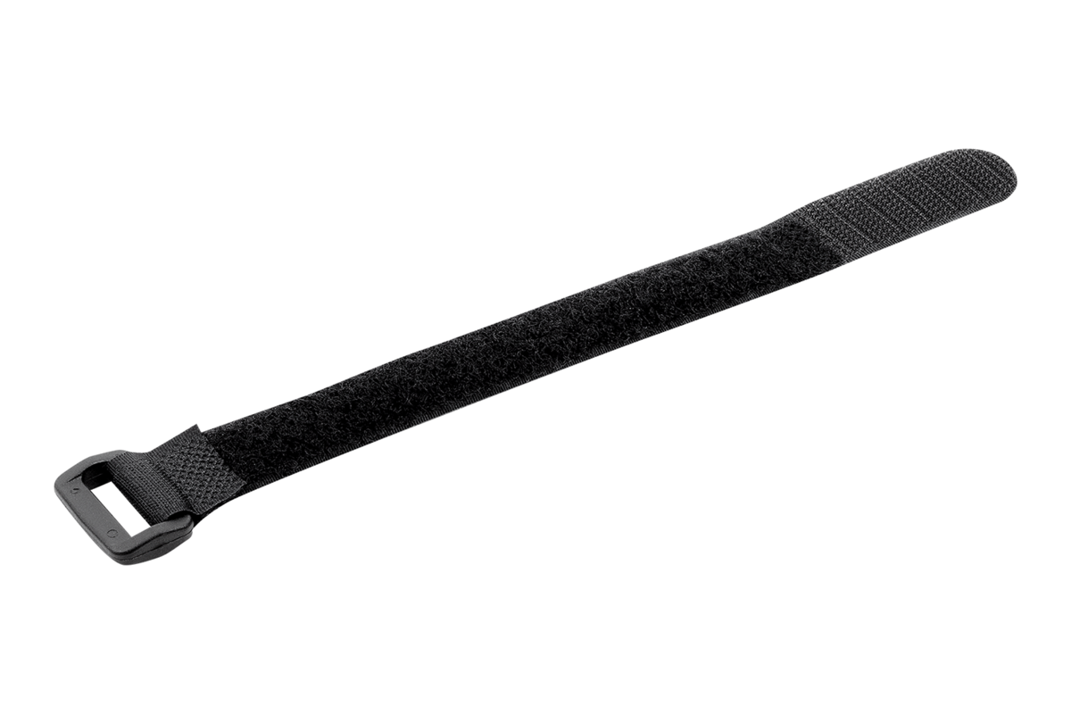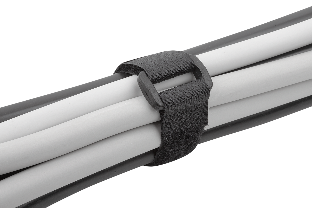 La sangle Velcro convient parfaitement pour regrouper, ordonner et sécuriser des câbles et des fils. Elle est passée à travers l'œillet, côté bride vers l'extérieur, puis fermement tendue en tirant dessus et solidement attachée.