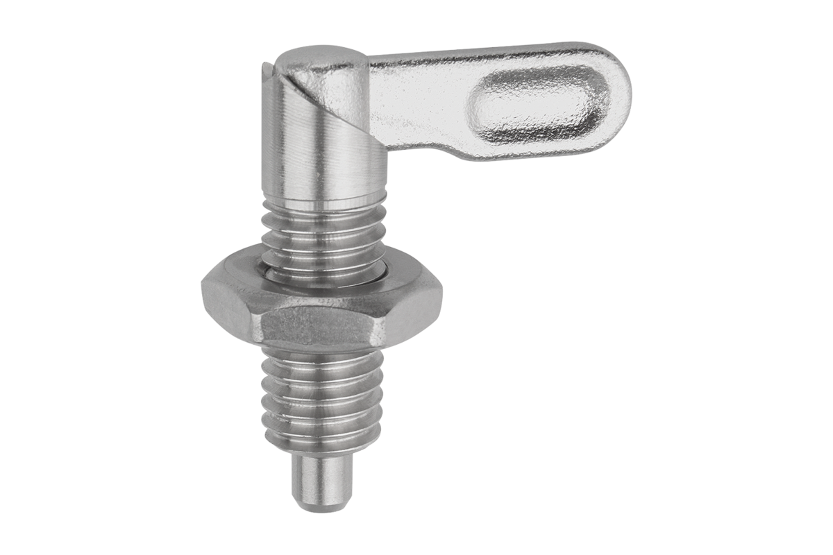 Les doigts d’indexage verrouillables sont utilisés lorsque l'application nécessite que le doigt soit rétracté à certains moments. Tourner le levier de 180° pour rétracter le doigt. Une encoche d’arrêt permet de maintenir le levier dans cette position.