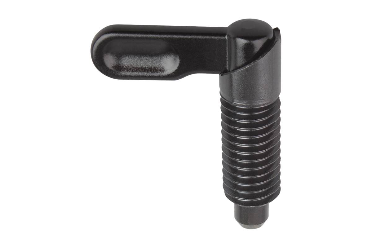 Les doigts d’indexage verrouillables sont utilisés lorsque l'application nécessite parfois que le doigt soit rétracté. Tourner le levier de 180° pour enclencher le verrouillage. Une encoche d’arrêt permet de maintenir le levier dans cette position.