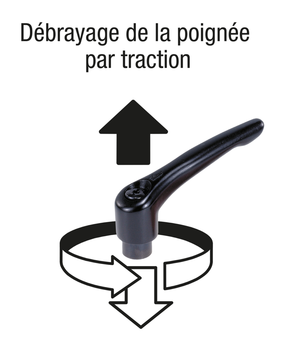 Poignée en zinc injecté haute pression selon DIN EN 12844.