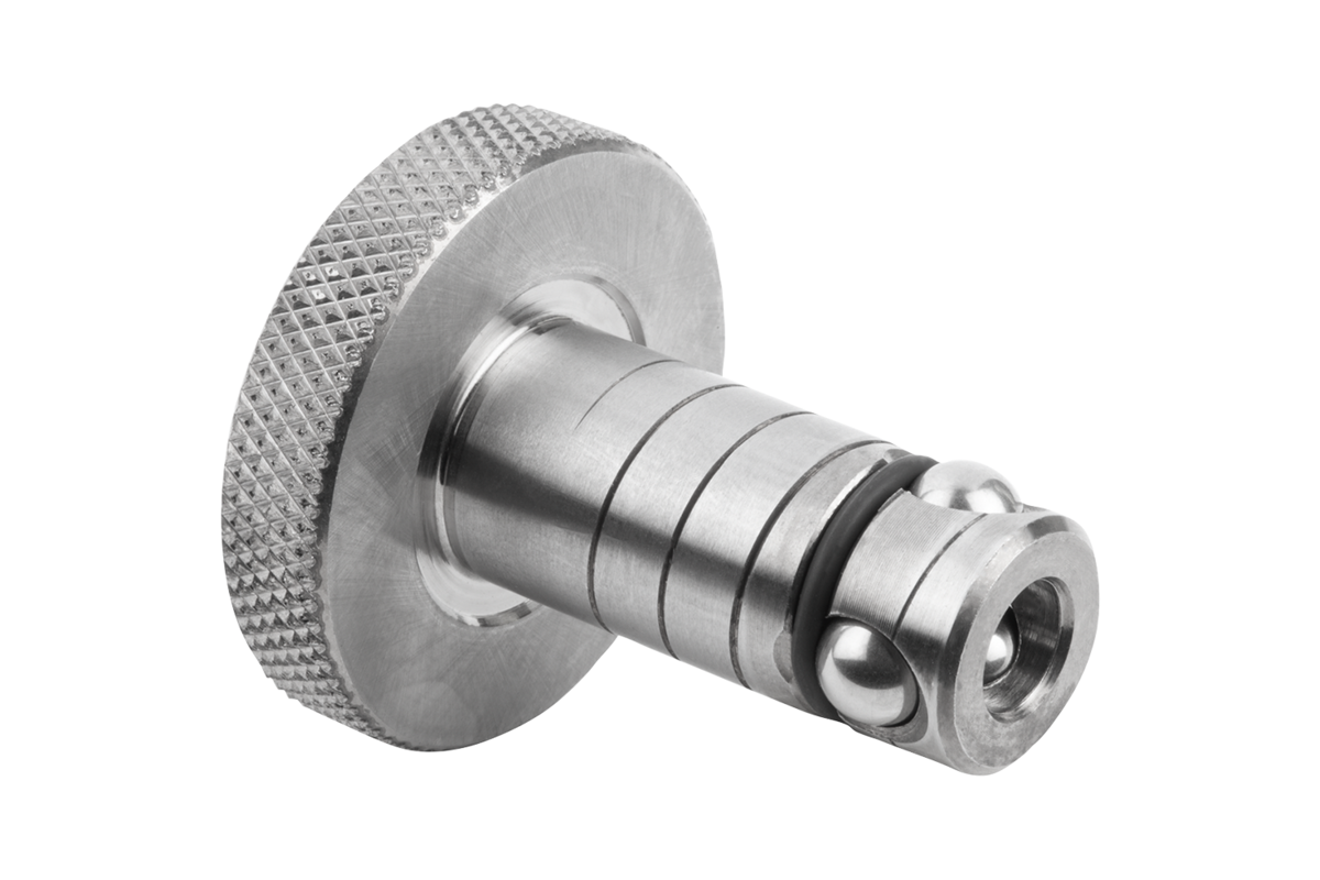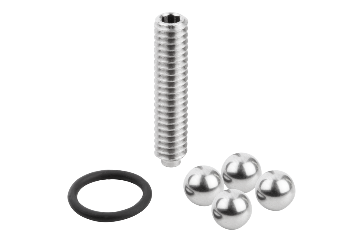 Le fait de serrer la vis (D2) permet de pousser la bille centrale et d’écarter ainsi les trois billes de fixation vers l’extérieur, où elles seront en pression dans la douille de fixation.