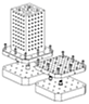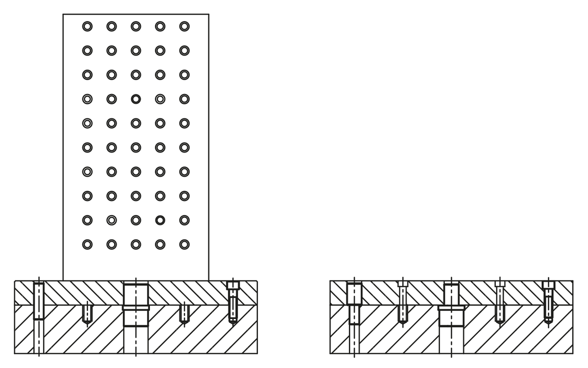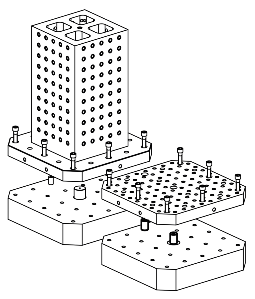 Cylindres de positionnement pour plaques de base à trame modulaire.