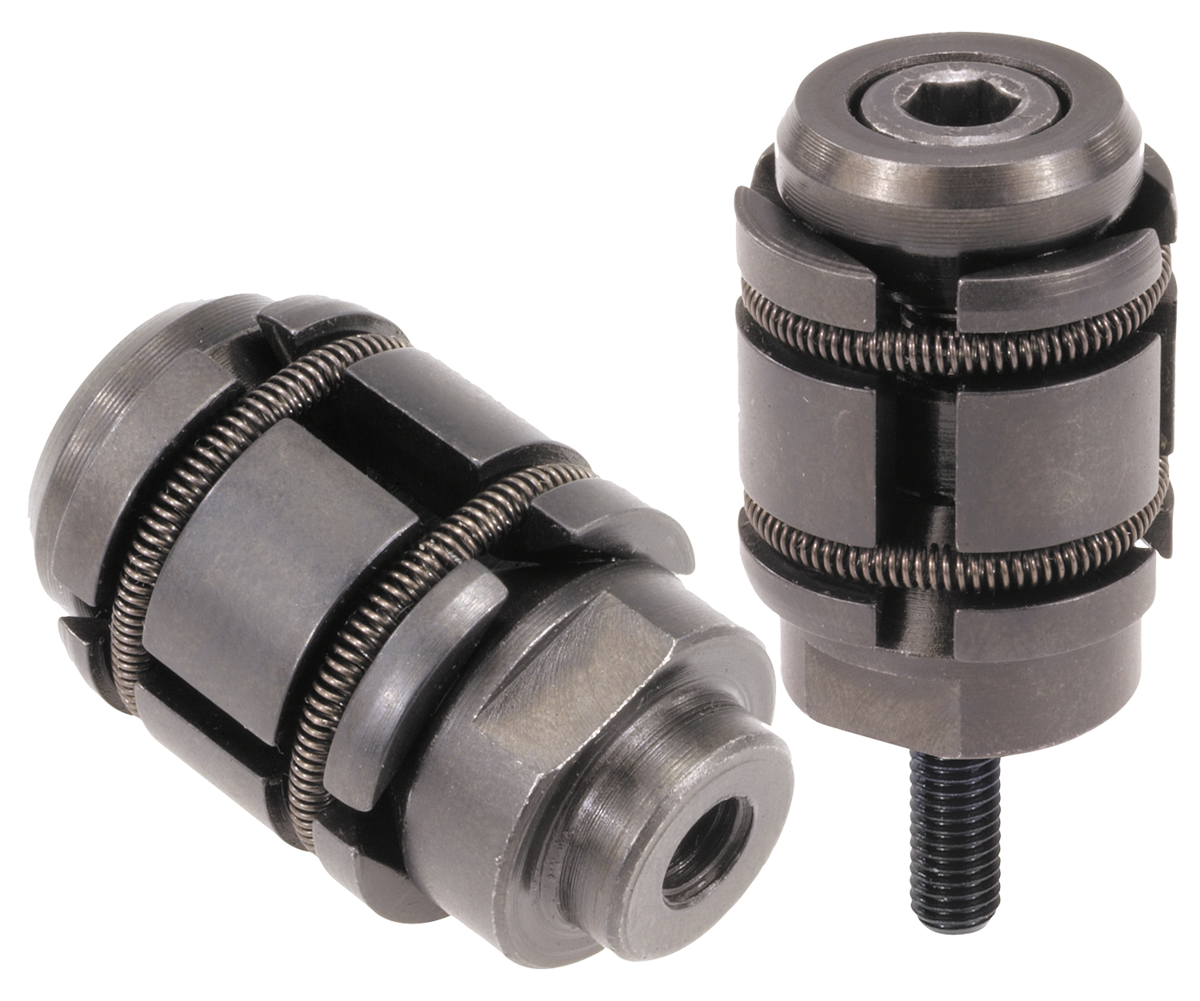 L'élément de serrage et de centrage permet le centrage et le serrage d'une pièce dans l'alésage. L'élément de serrage et de centrage dispose d'une course importante. La gamme de produits couvre une plage de serrage comprise entre Ø12 et Ø30 mm. Afin d'augmenter la précision du centrage, l'élément de serrage et de centrage peut être fixé dans un alésage à l'aide du tourillon de centrage (D2). La précision du centrage est de +/- 0,2 mm.
