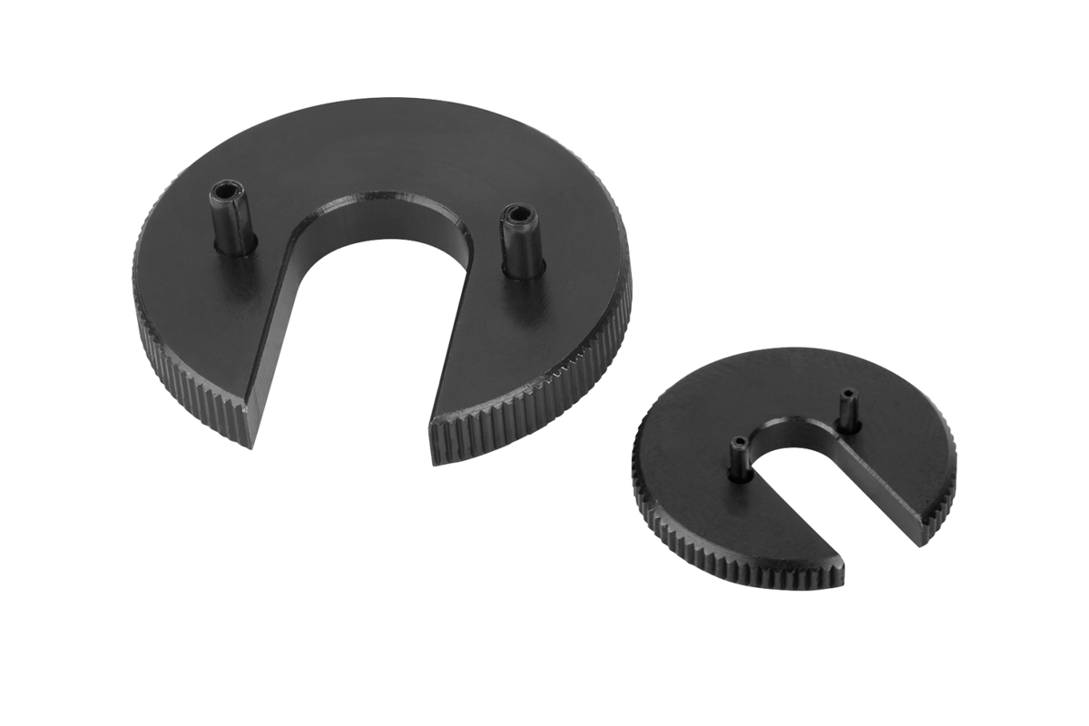 Clé de vissage spéciale pour vissage des doigts d'indexage sans collerette. Cette dernière doit être poussée sous le bouton de manœuvre en position dégagée, de manière à ce que l'ergot d'entraînement s'engrène dans la fente.