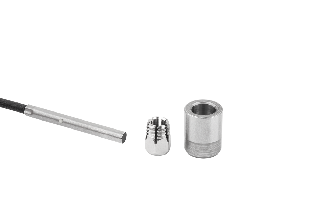 Le capteur est fixé et ajusté axialement sur la douille à l'aide de l'écrou de bridage. Le capteur est finalement fixé en serrant l'écrou de bridage.
