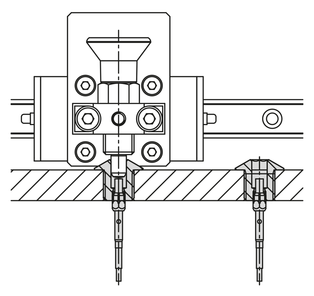 Les douilles de positionnement avec capteur d'état comportent un capteur réglable de manière variable sur la douille. Celui-ci permet de vérifier électroniquement si un boulon se trouve ou non dans la douille de positionnement.
