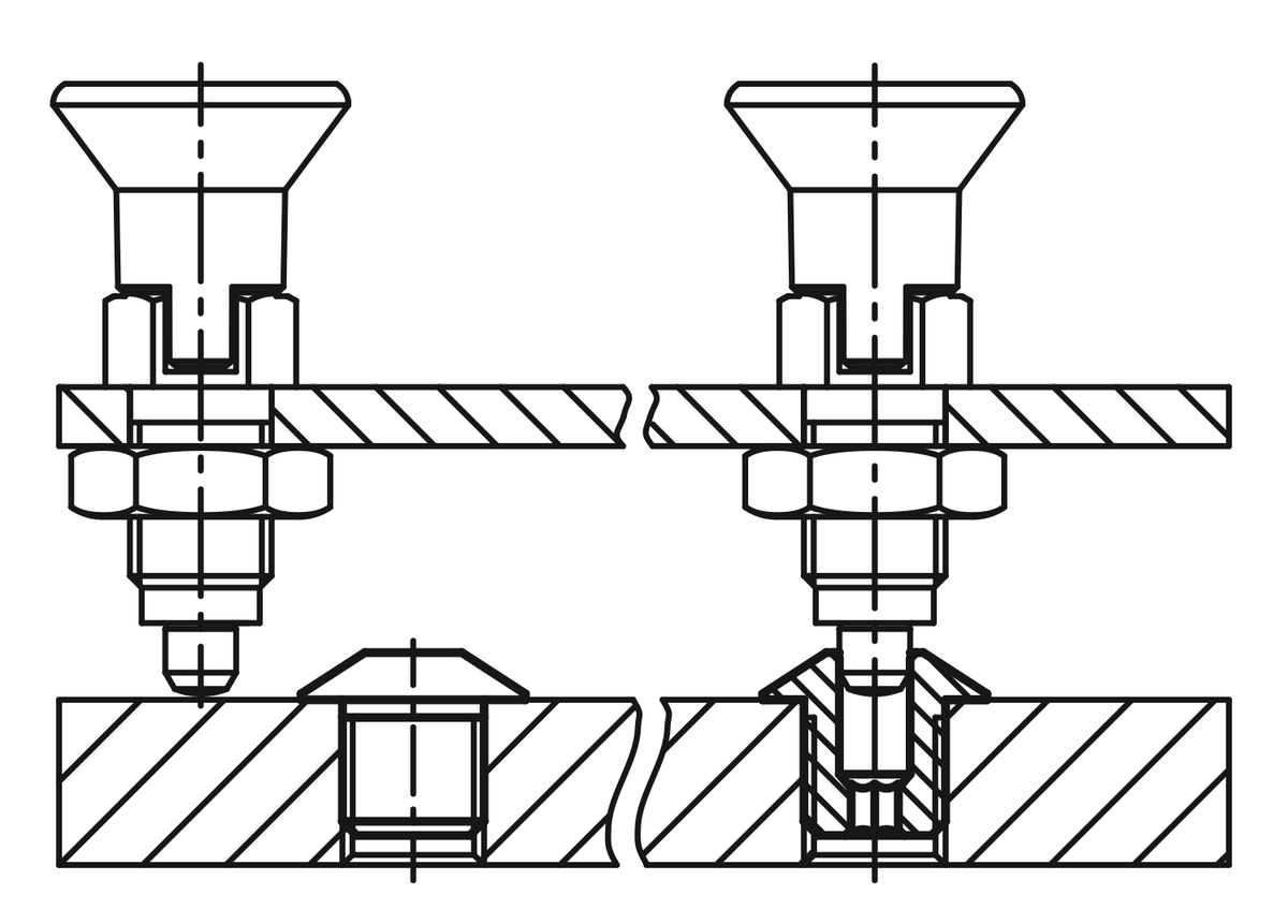 Douilles de positionnement adaptées au doigt d'indexage.
