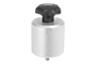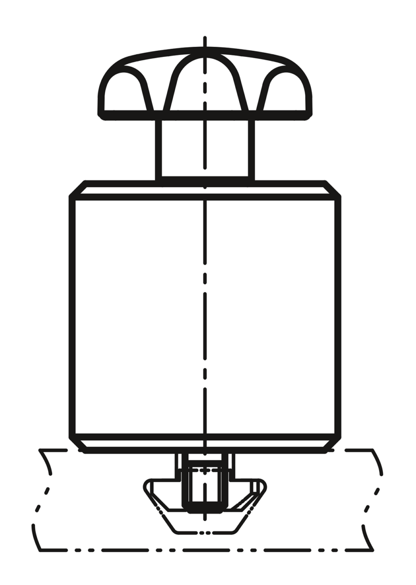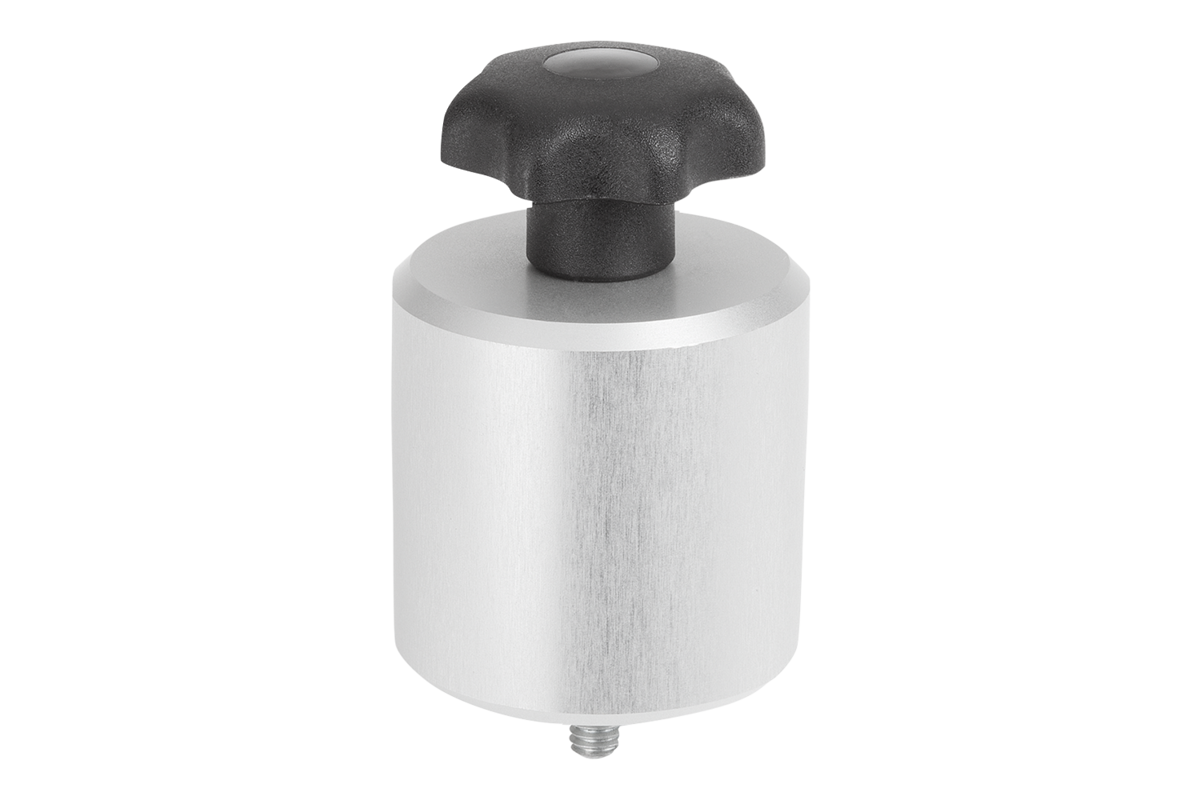 Butée coulissante pour systèmes profilés type B, type I et rainures en T selon DIN 650. Le serrage a lieu en tournant la poignée étoile. Lors du desserrage de la butée, la tige filetée à ressort facilite le déplacement sans bloquer le tasseau.