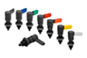 Les doigts d’indexage verrouillables sont utilisés lorsqu'il faut éviter tout déplacement de la position d'arrêt sous l'effet de forces transversales. Une rotation à 180° du verrou entraîne la rétractation du doigt d'arrêt, ce qui permet de modifier la position d'arrêt. L'encoche d’arrêt permet de maintenir le verrou dans cette position et le doigt d'arrêt rétracté.