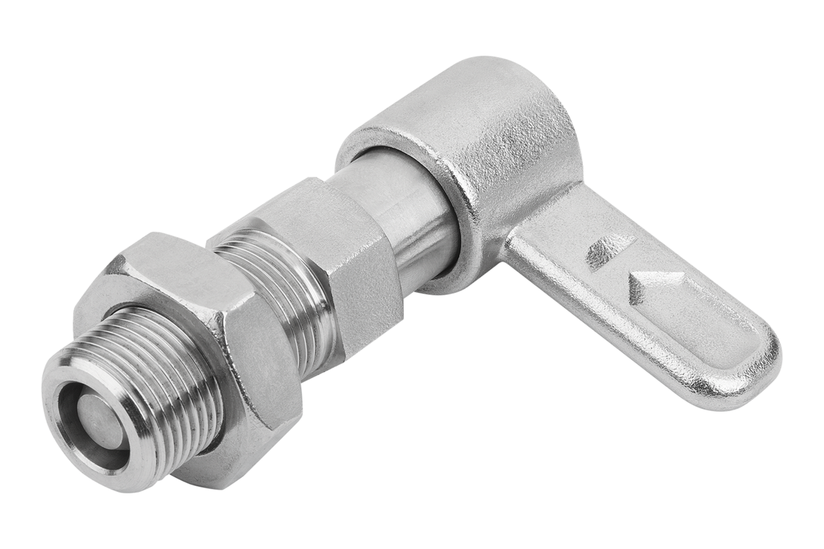 Les doigts d’indexage verrouillables sont utilisés lorsqu'il faut éviter tout déplacement de la position d'arrêt sous l'effet de forces transversales. Une rotation à 180° du verrou entraîne la rétractation du doigt d'arrêt, ce qui permet de modifier la position d'arrêt. L'encoche d’arrêt permet de maintenir le verrou dans cette position et le doigt d'arrêt rétracté.