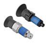 Doigt d'indexage en acier ou en inox avec bouton de manœuvre en plastique et frein-filet