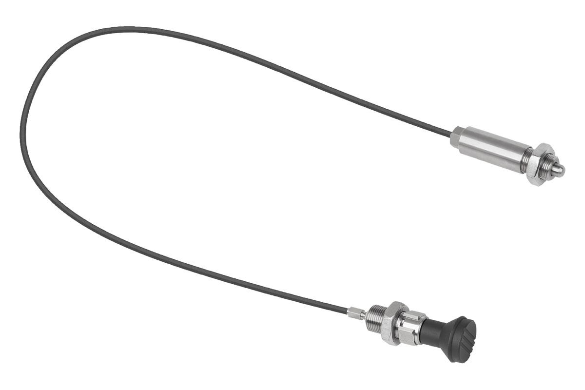 Le couplage entre le doigt d’indexage et la commande opérateur s’effectue à l’aide d’un câble Bowden. L’association du doigt d’indexage et de l’élément de commande permet de former un système complet adapté à de nombreuses applications. Si le désengagement doit s’effectuer sur une période plus longue et qu’il faut éviter un rappel du doigt d’arrêt, il convient d’utiliser la forme D avec fonction de verrouillage.
