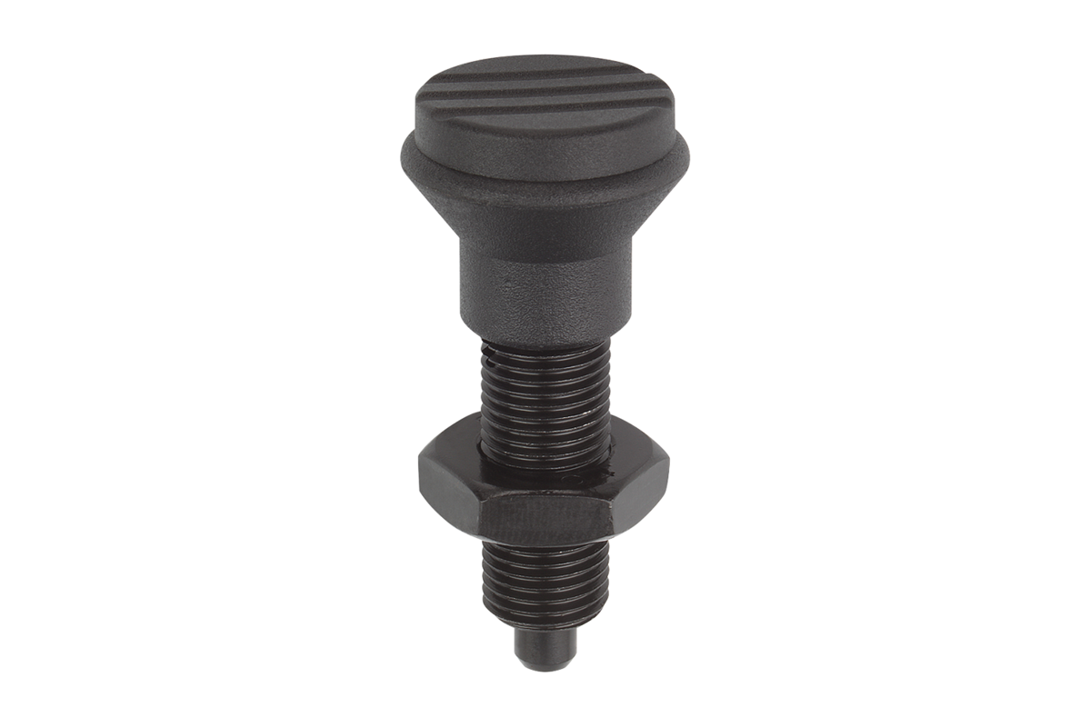 Doigt d’arrêt trempé, rectifié et bruni.