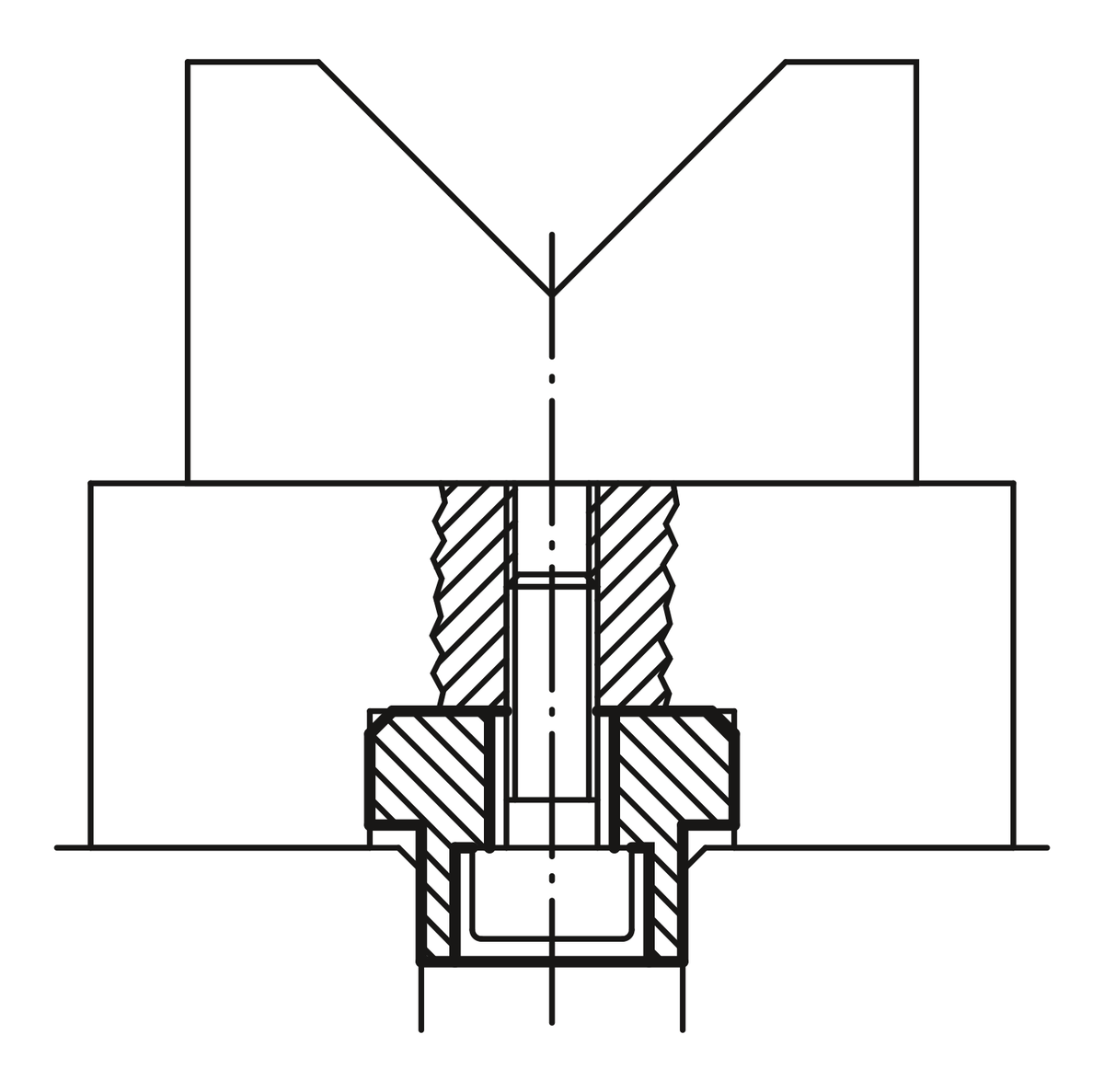 Les lardons de positionnement sont vissés dans une rainure avec un élément de serrage puis positionnés sur la contre-pièce.