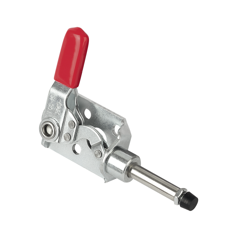 Sauterelle à tige coulissante à hauteur réduite. Les sauterelles se bloquent lorsque la poignée est en position fermée et ouverte. Elles peuvent donc être utilisées en pression ou en traction.