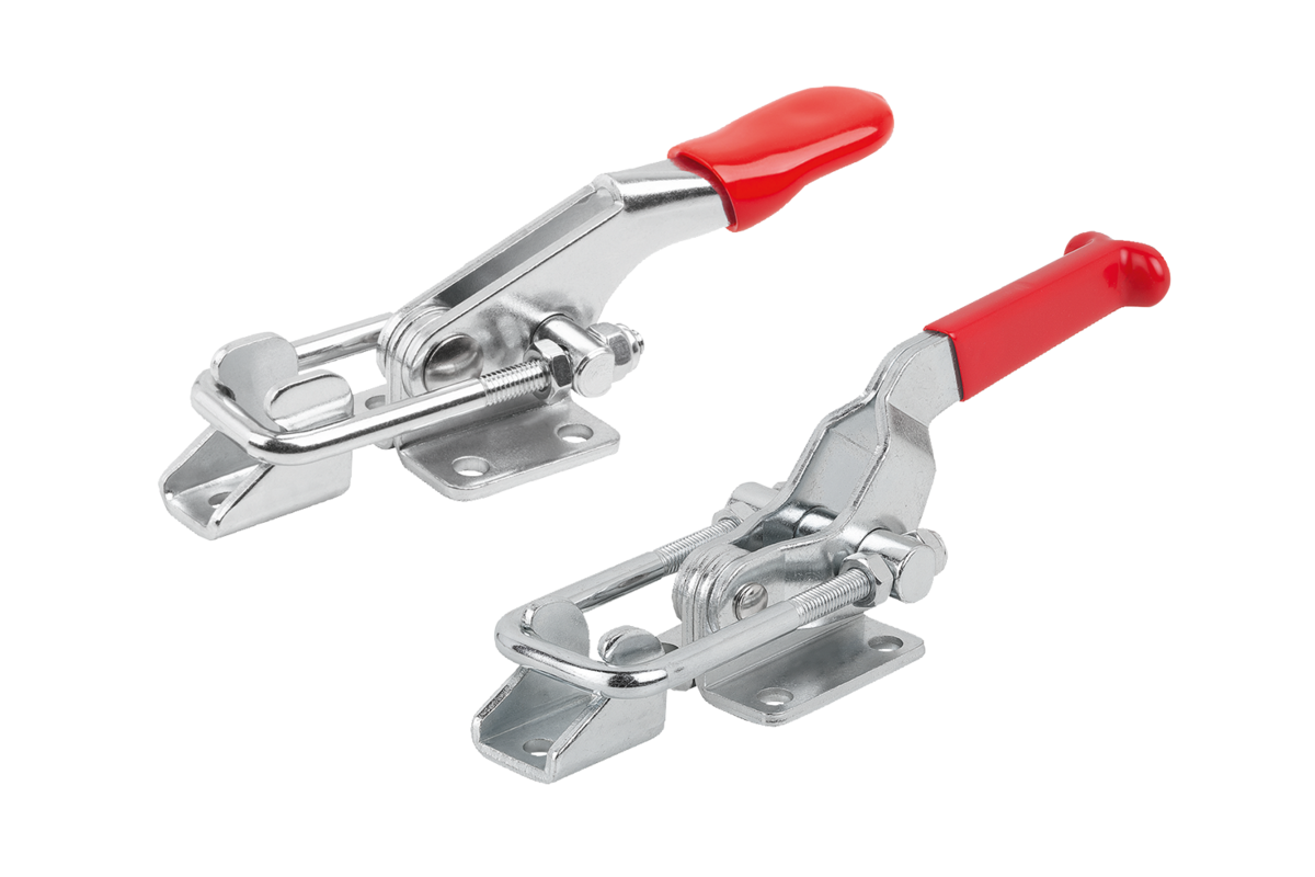 Les sauterelles à étrier conviennent particulièrement pour fermer et fixer rapidement des couvercles et des clapets. La course de réglage sur l'étrier peut être réglée individuellement pour chaque modèle.