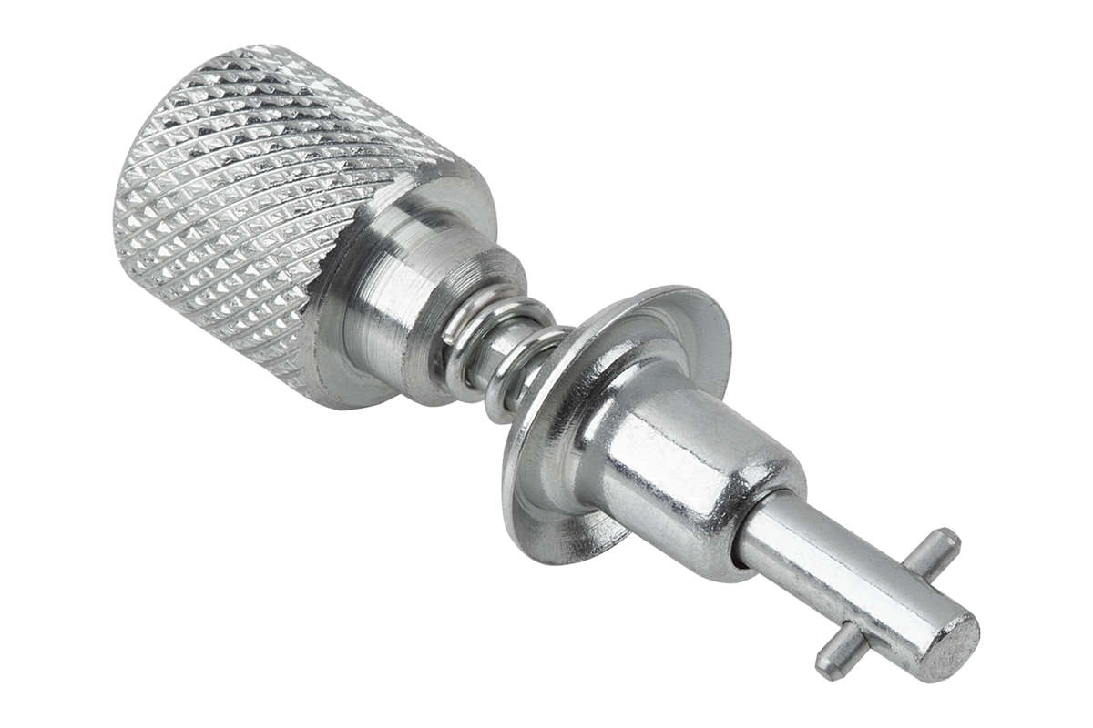 Les verrous quart de tour servent à maintenir et obturer des trappes, des couvercles de récipient, des habillages de machine, etc. Le verrou est fermé et ouvert par une rotation à 90°. La goupille se déplace en l'occurrence dans le boulon de verrou par le biais d'une came logée dans la partie inférieure du verrou et elle sollicite ainsi le ressort. Une petite gorge se trouve au point final de la came, dans laquelle la tige en croix s'enclenche. La force de précontrainte du verrou générée par le ressort garantit que le raccordement reste fermé et résiste aux vibrations.
