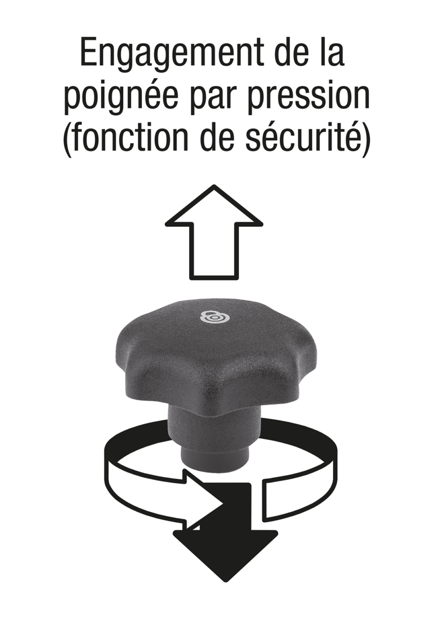 Les boutons étoile avec fonction de sécurité empêchent toute modification du point de serrage dûe à une ouverture ou une fermeture inopinée.