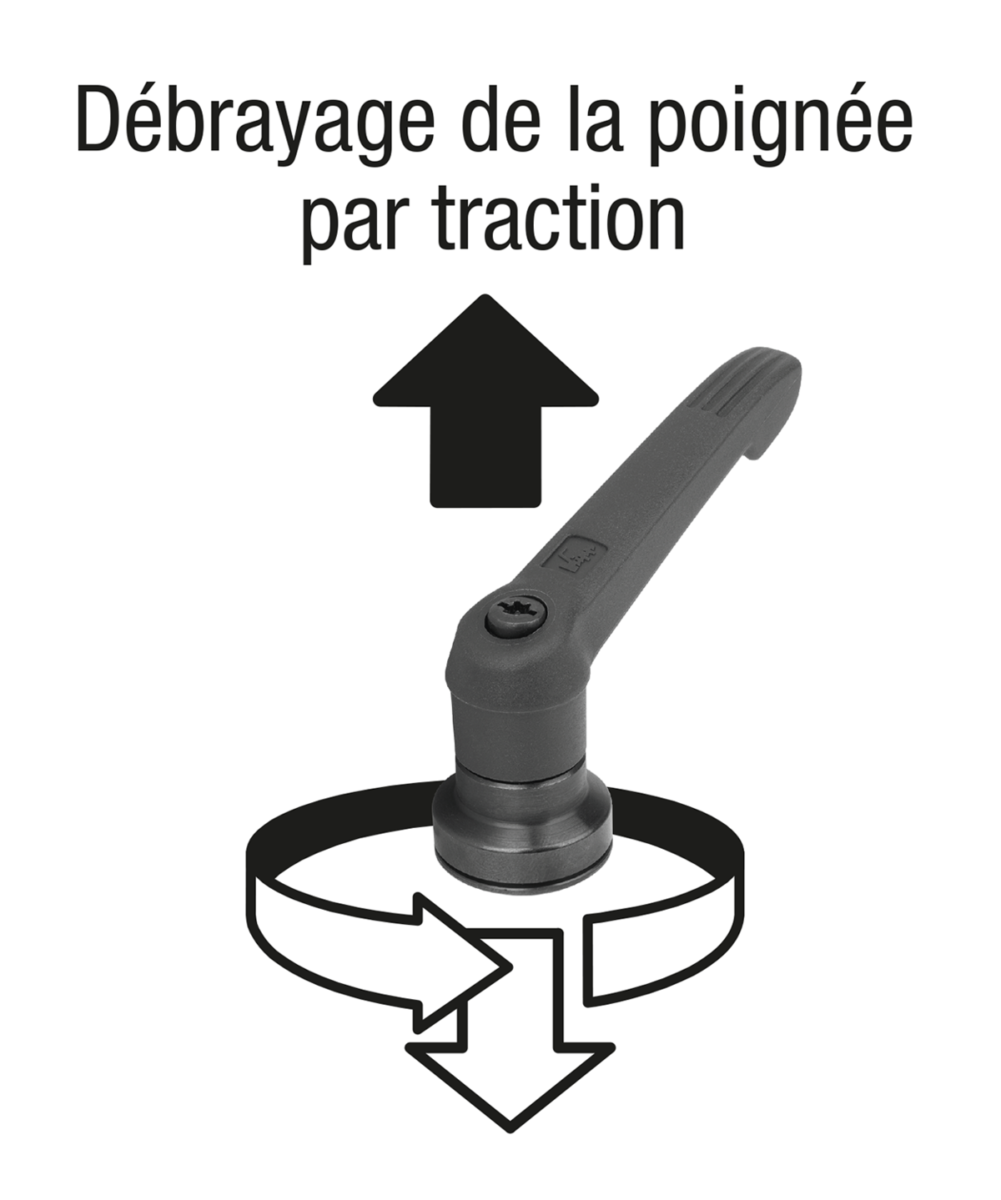 Par ailleurs, ce produit peut également être utilisé par des personnes ayant une force manuelle limitée (par ex. en rééducation) afin d'obtenir des forces de serrage comparables avec moins d'efforts. Une force manuelle plus faible est également nécessaire pour desserrer la manette indexable serrée.