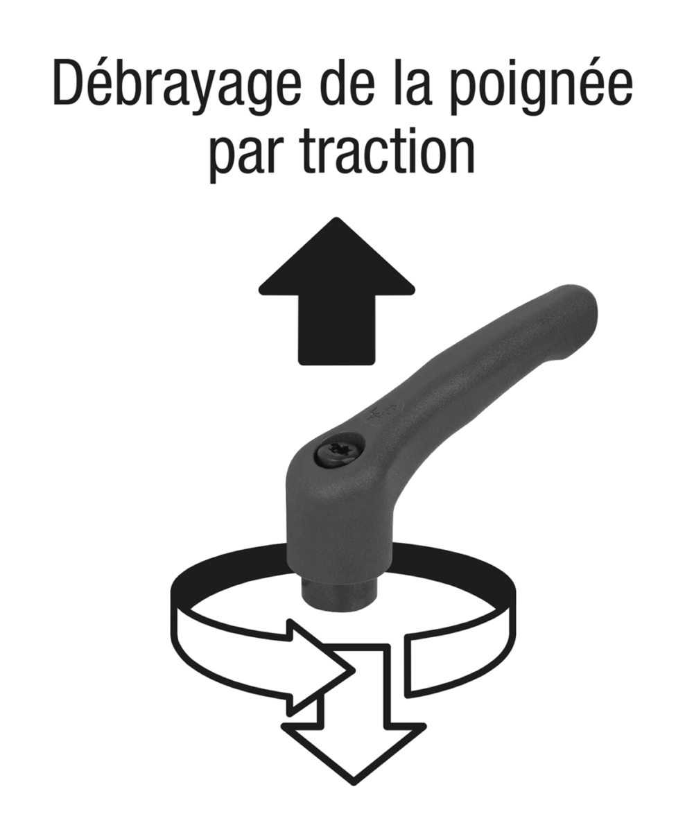 La poignée est engagée à l'état non actionné dans l'insert denté au moyen d'une couronne dentée, ce qui permet de fixer ou de libérer le filetage. En soulevant la poignée, celle-ci peut être repositionnée et réengagée dans la couronne dentée grâce à la force du ressort.