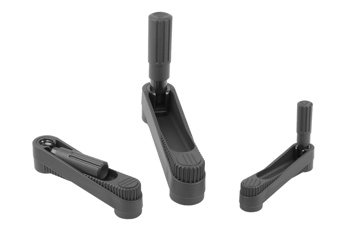 Manivelle avec poignée cylindrique escamotable, alésage ajusté avec rainure