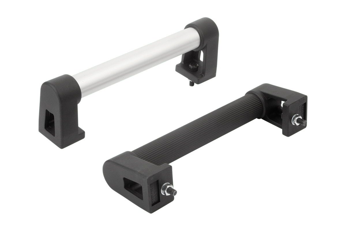Traverse de poignée : aluminium EN AW-6060. Embouts : polyamide renforcé fibre de verre, noir.