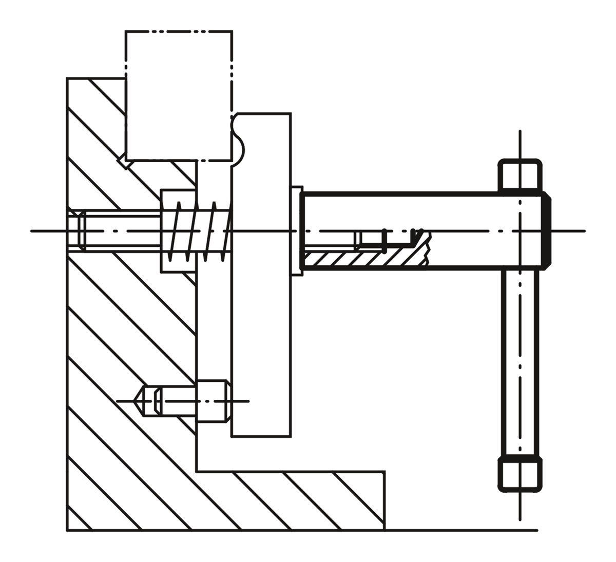 Les écrous à broche mobile possèdent une broche qui se déplace, et qui est maintenue par un ressort de compression dans chaque position souhaitée. Des embouts en plastique servent à limiter le déplacement.