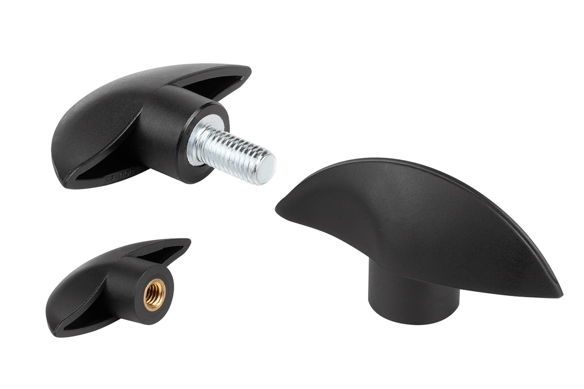Poignées papillon en plastique, insert fileté en laiton ou en acier, avec filetage