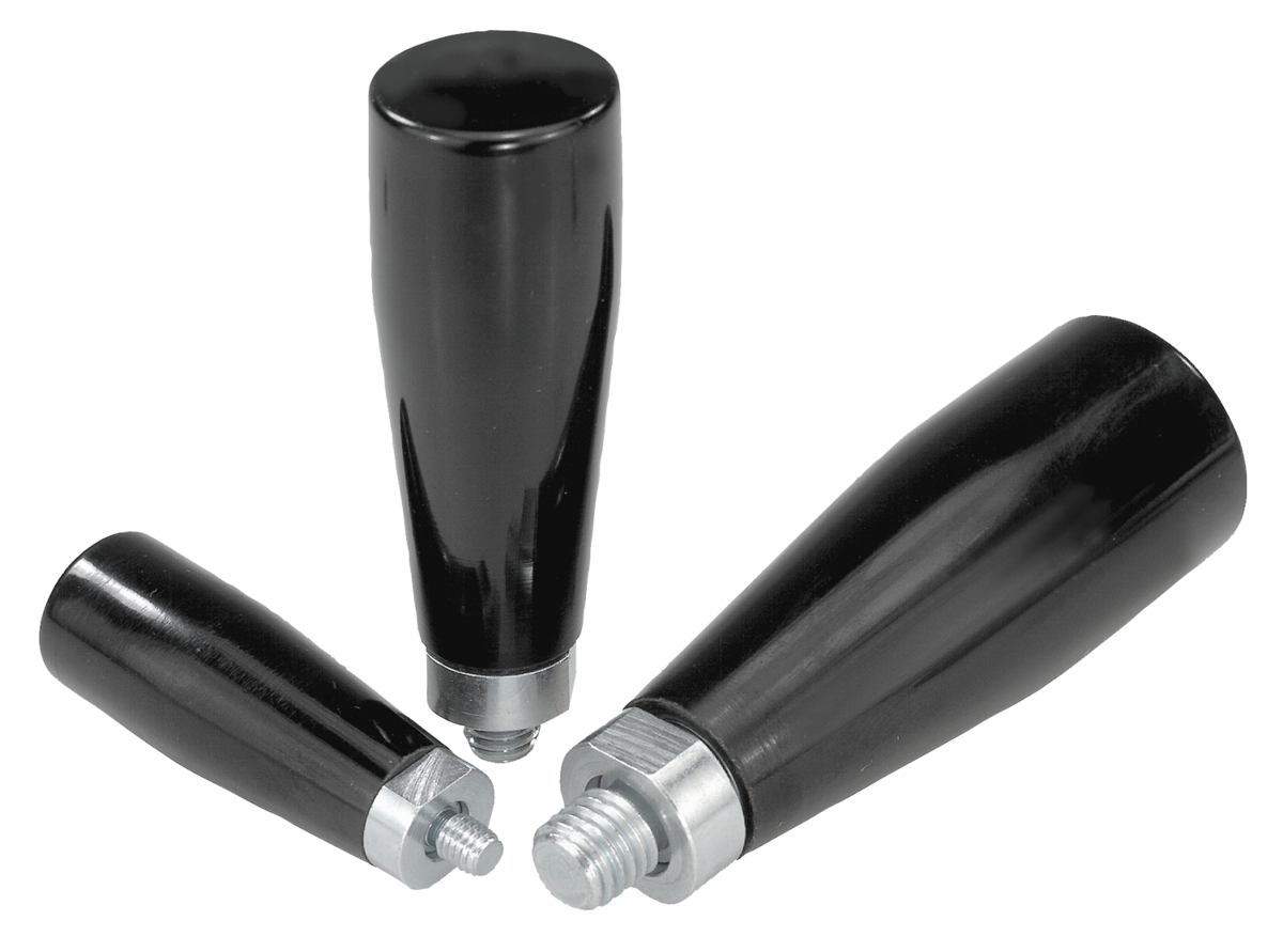 Plastique thermodurcissable PF 31 noir. Axe et insert fileté en acier zingué ou Inox.