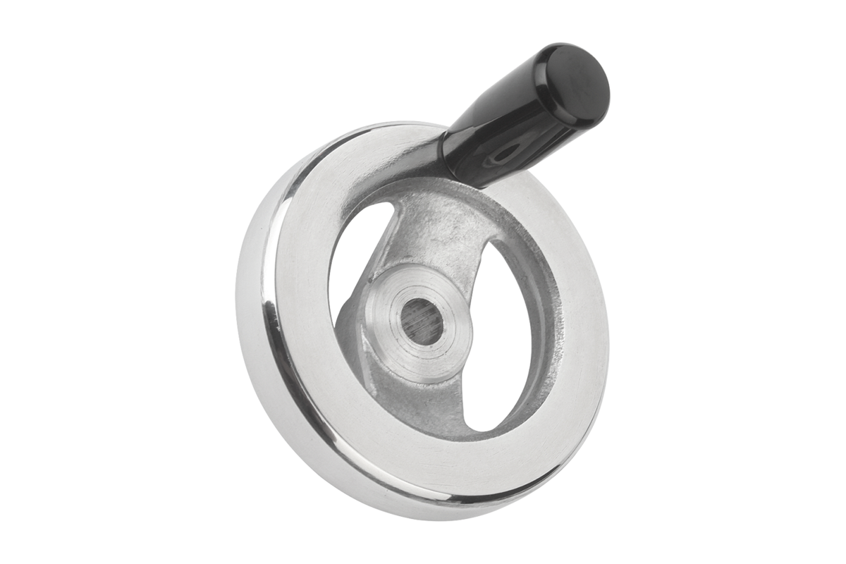 - Poignée cylindrique en plastique thermodurcissable, insert en acier zingué, jante polie