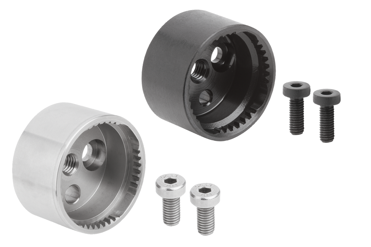 Pour chacun des éléments de verrouillage à denture intérieure de forme A et B sont incluses 2 vis CHC à six pans creux M3x8 ou M5x10.