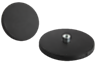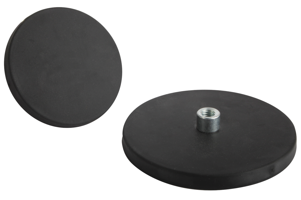 Aimants plats avec tenon taraudé, système blindé. Avec revêtement de protection en caoutchouc pour protéger les surfaces sensibles. Grâce au revêtement de protection en caoutchouc, le coefficient de frottement augmente de sorte que des efforts élevés de déplacement latéral peuvent être obtenus.