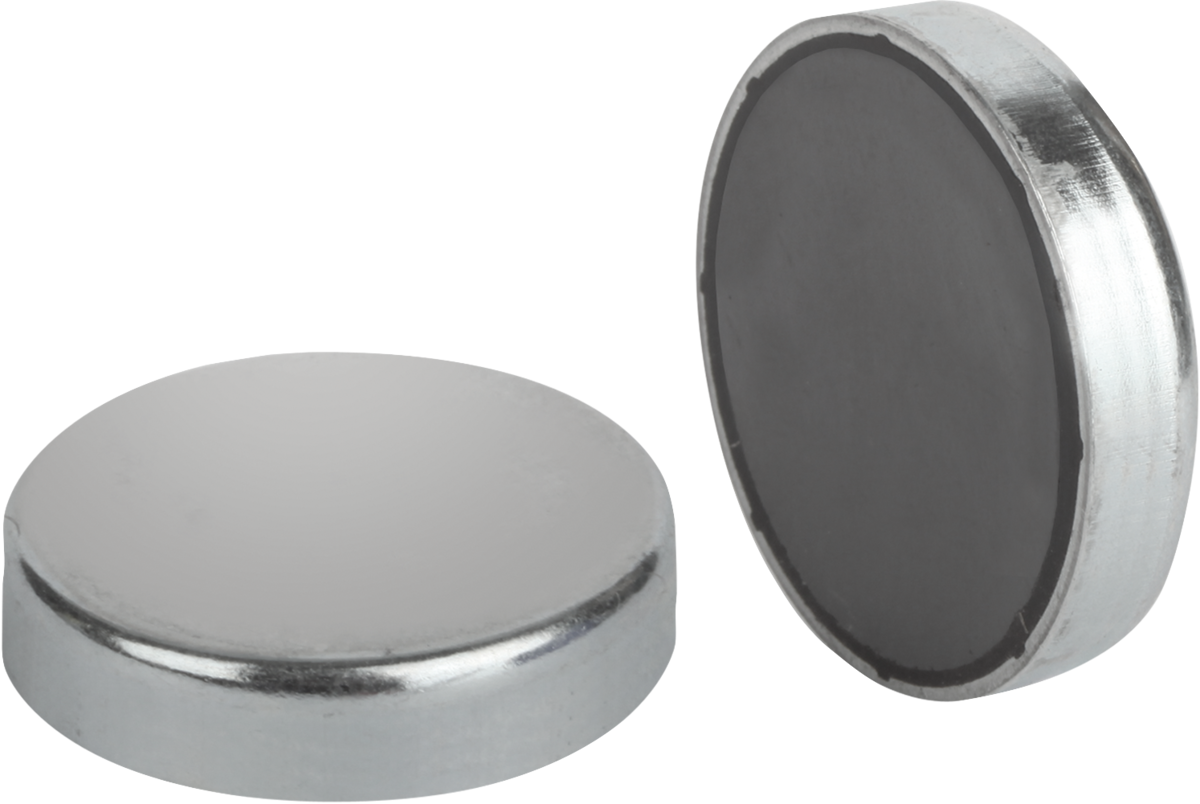 Aimants plats sans taraudage, système blindé. Les aimants de maintien plats s'emmanchent en force ou se collent dans des logements cylindriques.