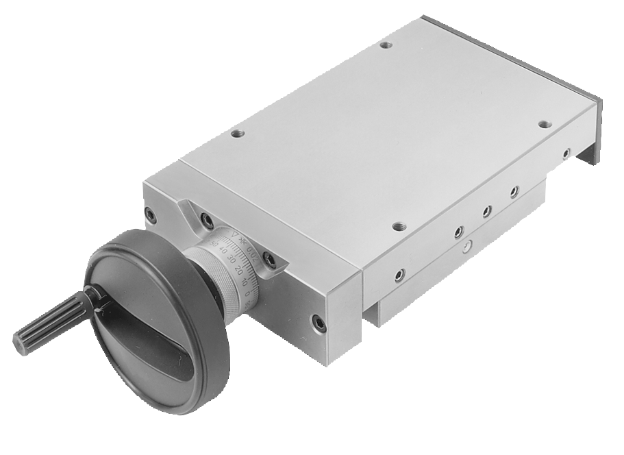On peut utiliser une manette indexable, 06460 en remplacement de la vis ”N”. La vis micrométrique est graduée de 0,02 en 0,02 mm. D’autres graduations sont possibles sur demande. La poignée du volant est rabattable.