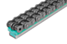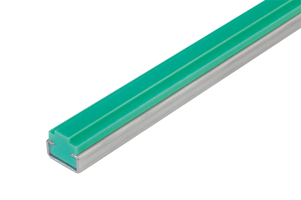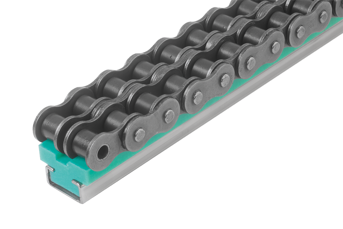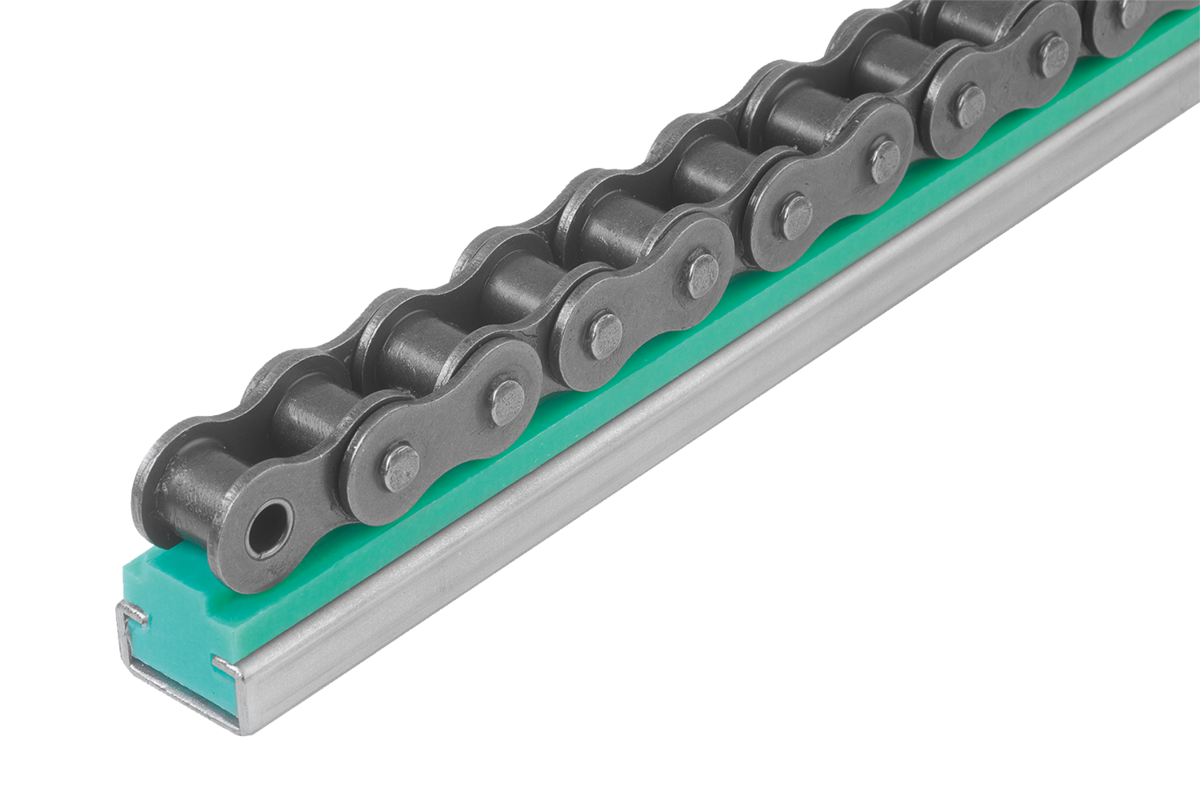 Glissières pour chaînes à rouleaux selon DIN ISO 606. Elles soutiennent et guident les chaînes à rouleaux du brin non tendu, garantissant ainsi une durée de vie plus longue car elles réduisent considérablement l'usure des chaînes à rouleaux. Elles permettent de réduire les vibrations et le bruit d'un entraînement par chaîne.