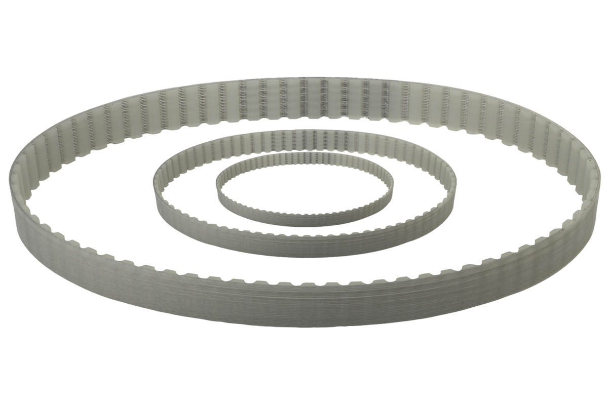 Courroie dentée sans fin avec un profil en forme de trapèze et une armature renforcée (par rapport à une rangée T) avec une division métrique. Profil de denture optimisé pour une répartition de puissance homogène et une déformation minimale de la denture sous charge. Effet de polygone réduit pour un fonctionnement des courroies plus silencieux. Les courroies dentées sont adaptées aux systèmes de motorisation, pour lesquels un certain degré de précision est nécessaire, lorsque la propreté est essentielle et en cas de contraintes chimiques.