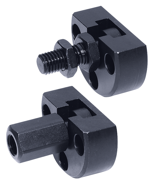 L´accouplement rapide réglable à dispositif de compensation de désalignement radial et angulaire constitue une solution idéale pour une grande variété d´applications : p.ex. pour mouvement linéaire non aligné. Le montage/démontage s´effectue au moyen d´une rainure ”T”, sans autre forme d´ajustement manuel. L´accouplement rapide peut être relié à tous types de vérins, pneumatiques ou hydrauliques, grâce à son raccord vissé.