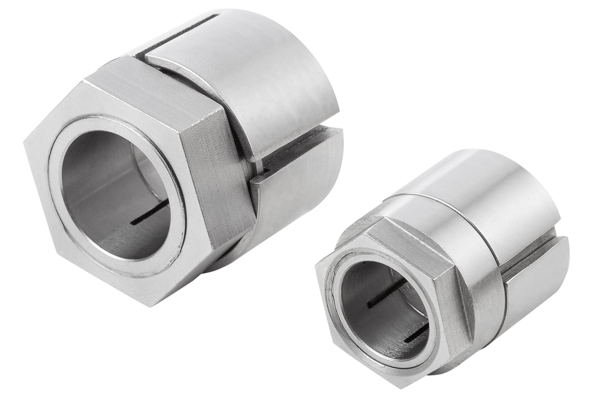 Bague de serrage expansible avec moment d'inertie faible. Montage et démontage aisés – pas de grippage sur l'arbre. Parfait pour les connexions sans jeu. Concentricité et circularité excellentes. Adapté à une utilisation sur des arbres avec ou sans rainure.