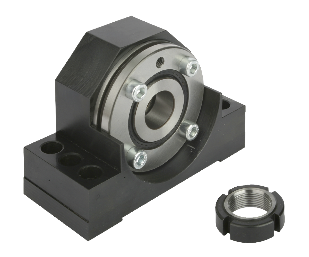 Les unités de paliers fixes sont prêtes au montage et sont équipées de paliers de haute précision précontraints avec un angle de pression de 60°. Elles supportent aussi bien les forces axiales que radiales venant des deux directions et garantissent, en raison de la précontrainte, une rigidité maximale, une concentricité, un positionnement précis de l'outil et une très bonne répétabilité.