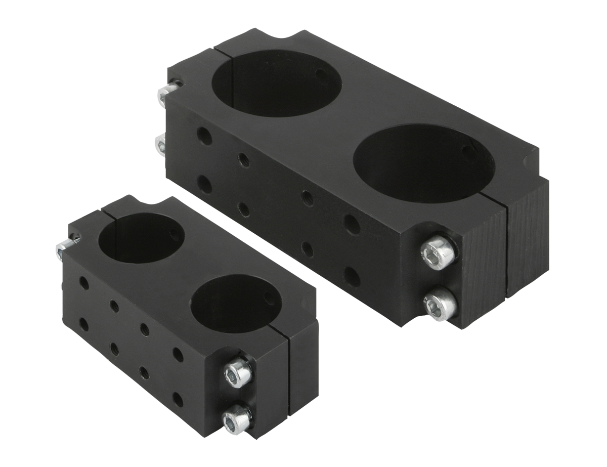Socle de serrage double disponible dans quatre dimensions différentes. Les surfaces de montage usinées avec alésages garantissent un montage précis des éléments.