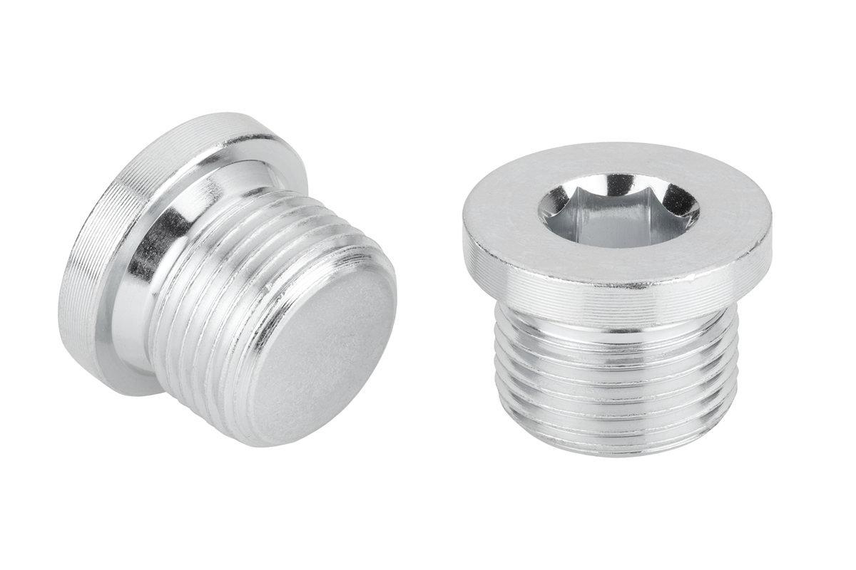 Bouchons filetés avec embase et six pans creux pour obturation de perçages avec taraudage cylindrique.