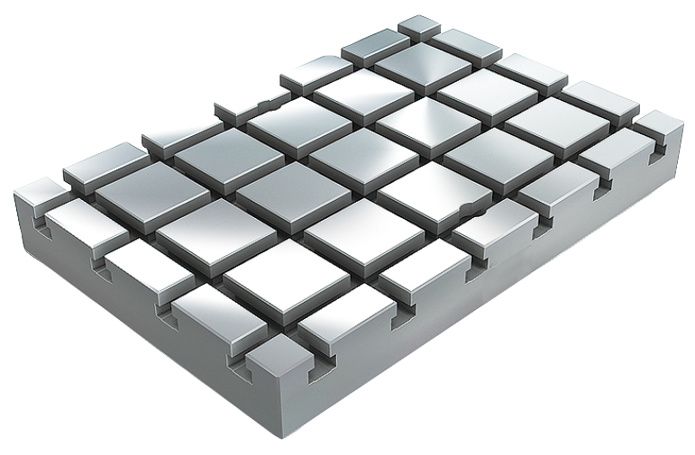 Les plaques de base avec rainures en T sont utilisées pour la configuration de dispositifs modulaires. Ces plaques de base sont positionnées et fixées directement sur les tables de machine-outils.